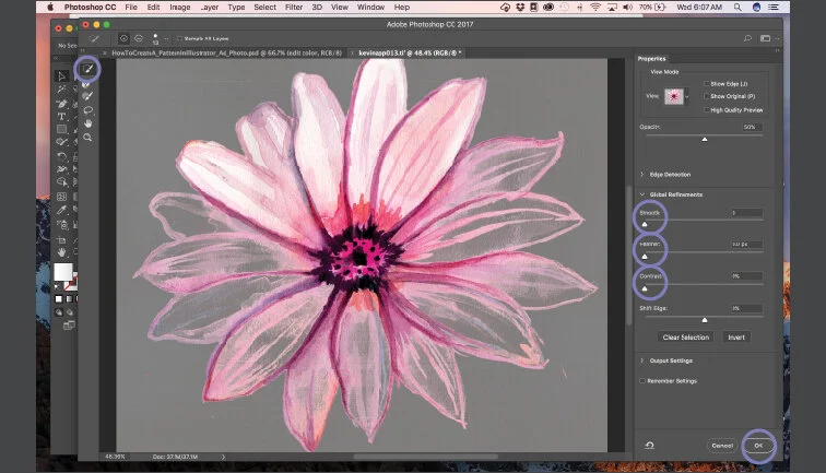 - Play with the smooth, feather and contrast to get clear edges for how you would like your drawing or painting to be clipped, then hit ok.