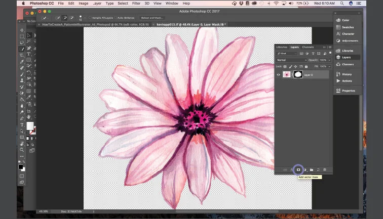 - Once you have your selection made, hit add layer mask in the layers panel to clip your image.
